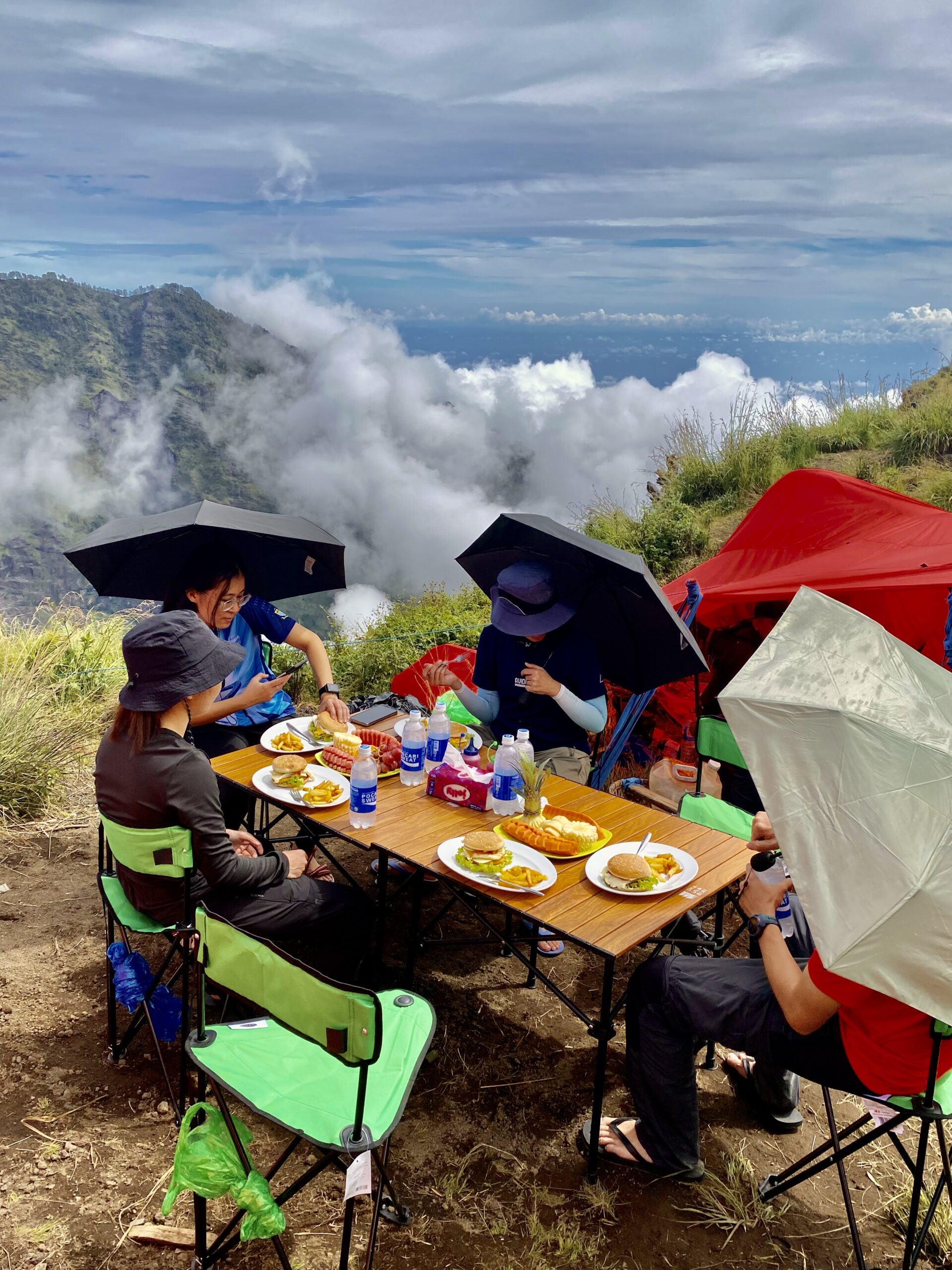 you will have long rest for 1 to 2 hours,while waiting and having lunch .countinue the walk up to the crater rim / basecamp (pelawangan sembalun 2639m), reach the basecamp ,enjoy the fried bananas and some hot drinks and the view of lake,summit and sunset,having a dinner and rest as early as posible.